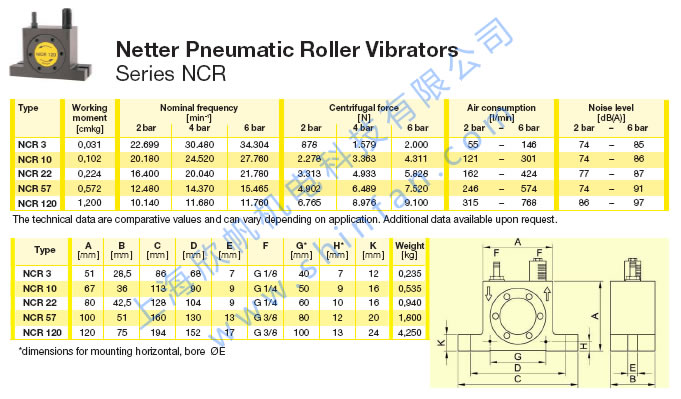氣動(dòng)滾軸振動(dòng)器NCR3,NCR10,NCR22,NCR57,NCR120