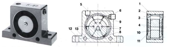客體由擠壓鋁加工而成,精制鋼滾在其中滾動。此鋼滾由兩片特制高抗沖擊塑料端蓋定位。在殼體上有兩個水平孔和兩個垂直孔,使安裝容易?諝鈴南嗷ゴ怪钡膬蓚進氣孔中的一個進入。這兩個進氣孔為標(biāo)準(zhǔn)管螺紋。為堵住不用的一個進氣孔,隨機提供一個管塞。