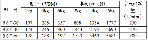 BSF系列氣錘式振動(dòng)器為高強(qiáng)度鋁合金。主要結(jié)構(gòu)由撞擊件和氣室組成,內(nèi)無彈簧等易損件,并可任意位置,任意方向安裝。其利用壓縮空氣驅(qū)動(dòng)氣室內(nèi)撞擊件往復(fù)運(yùn)動(dòng)而產(chǎn)生一規(guī)則性振動(dòng),對(duì)架橋堵塞現(xiàn)象破壞效果極佳。此振動(dòng)的振動(dòng)力度大小及頻率均可由調(diào)節(jié)壓縮空氣的壓力大小及流量來控制,并能瞬間啟動(dòng)和停止工作。