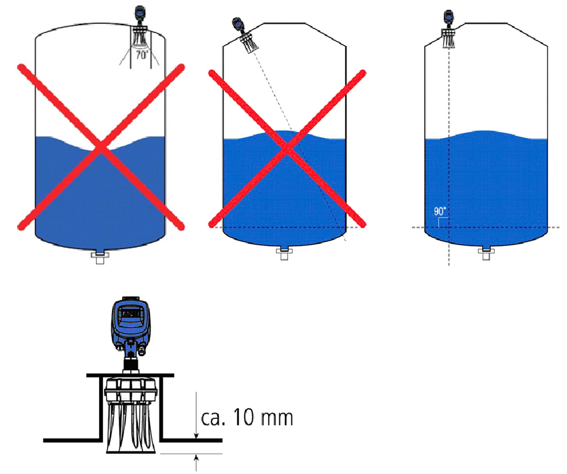 正確的安裝位置為:離罐壁距離為罐直徑1/6處,最小距離為500mm