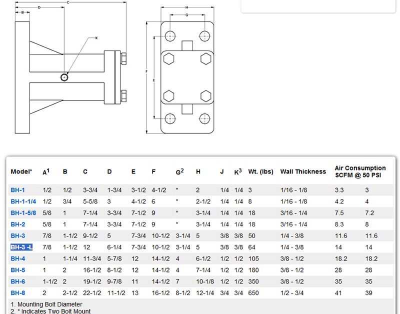 NAVCO vibrators型號包括:BH-1,BH-1-1/4,BH-1-5/8,BH-2,BH-3,BH-3 -L,BH-4,BH-5,BH-6,BH-8,氣動振動器獨特的navco BIN映射方法涉及的儲存容器和其預(yù)期的散裝材料的詳細(xì)的評價。建議的基礎(chǔ)上的各種因素,包括體積密度,粒度,水分,溫度,容器的大小和形狀。navco氣動活塞振動器的大小及其影響區(qū)域的應(yīng)用是確定的。振動器位于料倉或漏斗,重疊區(qū)域影響;振子在一個序列中,提供最優(yōu)流模式和最小公用工程消耗操作。
